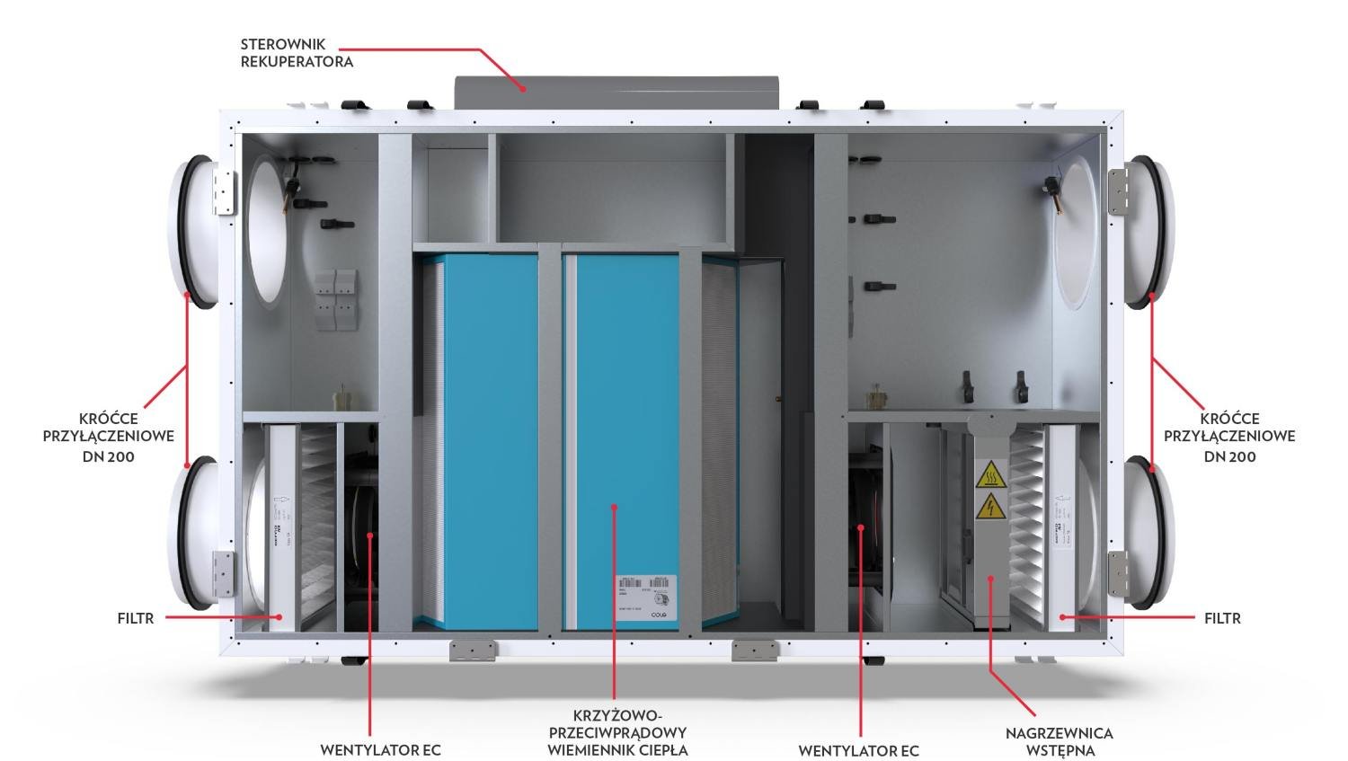 - niskoenergetyczne wentylatory EC – gwarantujące niskokosztową, cichą i niezawodną pracę przez długie lata eksploatacji